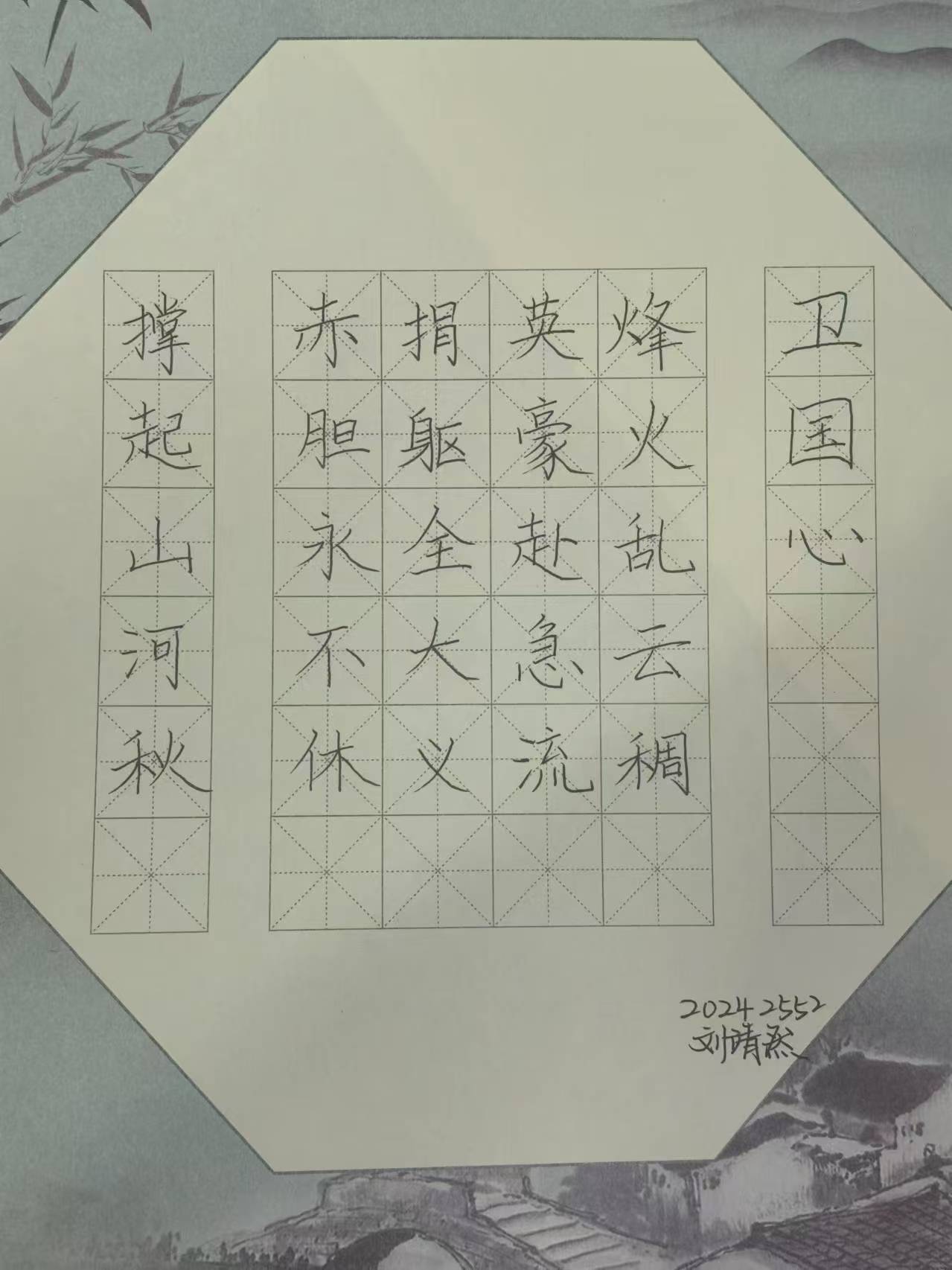 通过分享,同学们用作品表达对历史的铭记和对未来的期许。一幅幅苍劲有力的书法作品,展现了同学们的爱国情怀和艺术风采。