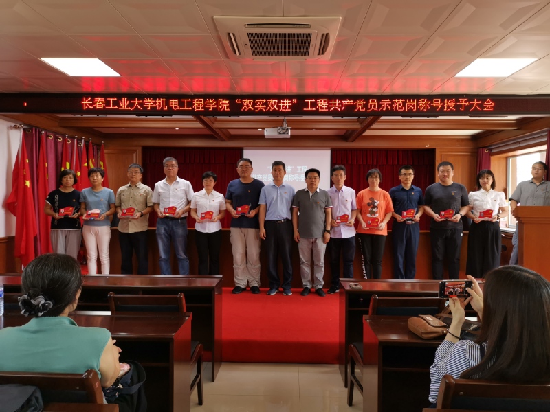 仪式上,学院院长岳晓峰教授宣读了《关于授予李明同志等27名教师党员“双实双进”工程共产党员示范岗的决定》。党委书记李奇涵、院长岳晓峰为27名党员教师代表颁发了“双实双进”工程共产党员示范岗桌牌。