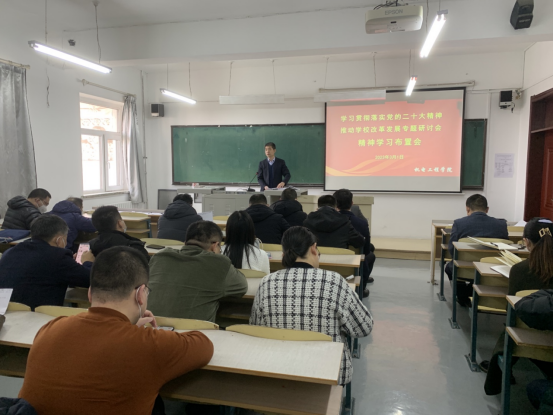 李奇涵传达了学校党委书记孙长智讲话精神,深入说明了学校为什么要召开此次研讨会、为什么要进行深化综合改革、综合改革能为我们带来什么、我们应该以什么样的态度来对待改革等方面内容。李奇涵还结合目前学院发展实际进行了总体安排部署,号召全体教师深入学习贯彻习近平新时代中国特色社会主义思想和党的二十大精神,紧扣学校综合改革主题主线,积极支持改革发展,投身高质量建设,坚定改革决心和信心,增强改革创新意识,提升改革攻坚能力,敢作敢为,善作善成,不断把全面深化综合改革工作推向深入。