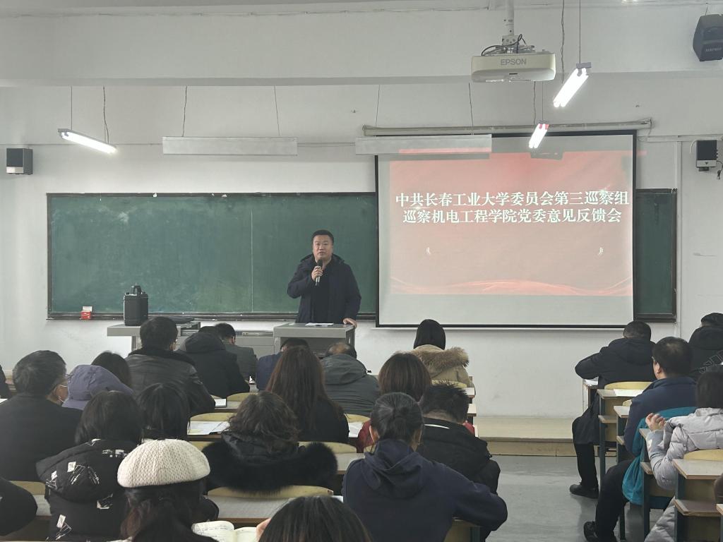 根据长春工业大学巡察工作领导小组的部署,2024年1月11日,党委第三巡察组向yl7703永利党委反馈巡察情况。党委第三巡察组组长郭志伟传达了学校党委书记、巡察工作领导小组组长孙长智同志在学校巡察工作汇报会上的讲话精神。党委第三巡察组副组长李丹代表巡察组向yl7703永利党委领导班子反馈了巡察意见。学院党委书记李奇涵就作好巡察整改工作做表态发言。
