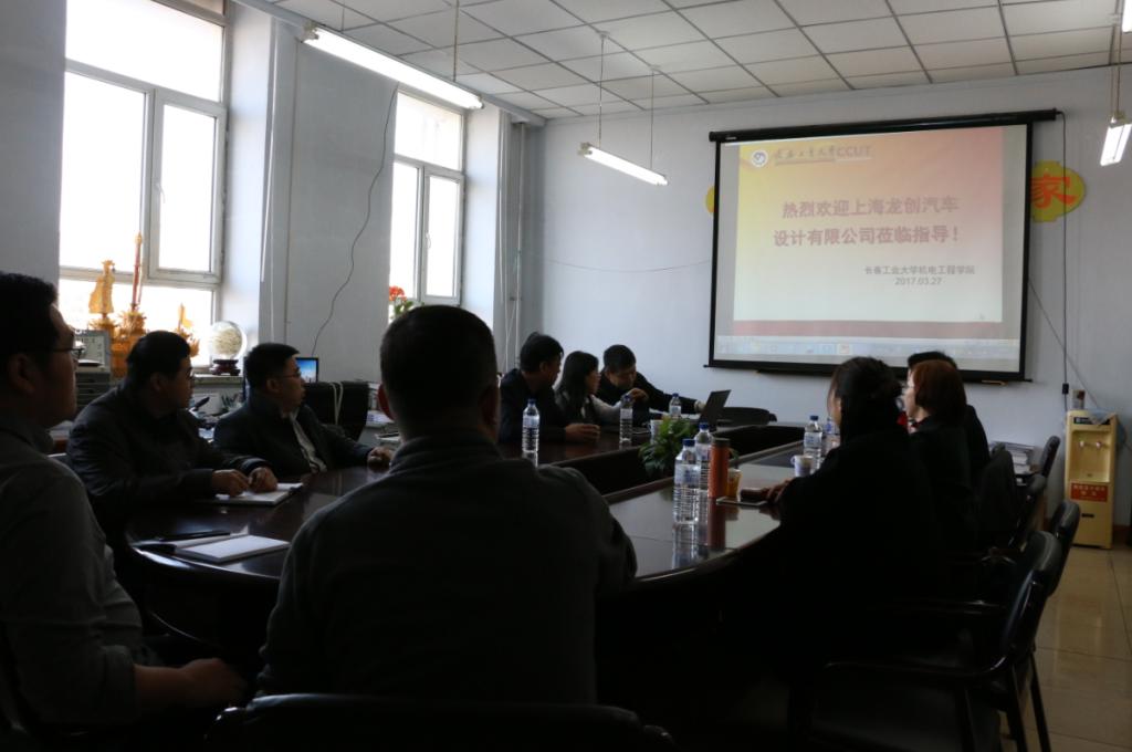 新闻网讯[通讯员 宋广生] 3月27日,上海龙创汽车设计股份有限公司(以下简称“上海龙创”)的部分领导莅临我院,顺利通过、完成与我院研究生联合培养合作共建实践基地正式启动仪式并举行了上海龙创汽车设计教学示范中心揭牌仪式。我院郭立祥书记、岳晓峰院长以及我院领导班子、各系主任参加此次揭牌仪式。其间,上午在我院资料室认真听取了我院岳晓峰院长关于我院基本建设情况和研究生培养的相关汇报。随后,参观了我校北湖校区我校首任校长郭力铜像。下午在我院会议室与各系主任进行了良好的合作交流,且在我院领导的陪同下与上海龙创公司部分领导参观我校南湖校区各实验室,整天的活动是在热烈友好的氛围中圆满结束。