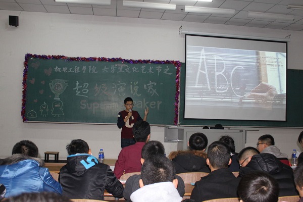 新闻网讯(通讯员 马红柳)为了提高大学生英语学习兴趣,提升英语实际运用能力,11月18日yl7703永利在北湖校区举办了大学生文化节系列活动之“超级演说家“英语演讲比赛。学院四大联合会主要学生干部和16级全体学生参加了活动。