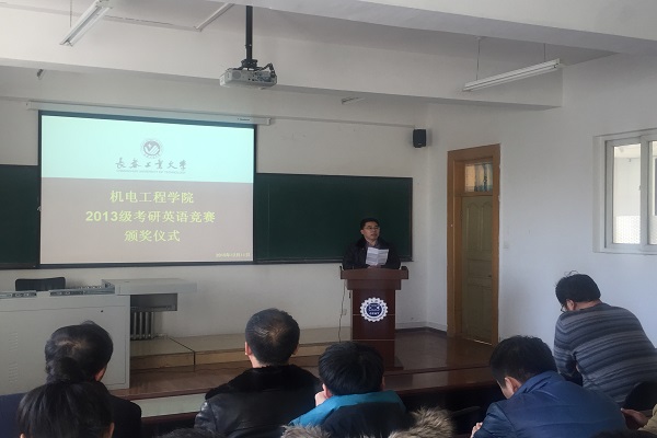 新闻网讯(通讯员 李远东)为加强学风建设,促进广大学子积极备战2016年考研,yl7703永利于11月29日举行2013级考研英语竞赛,并于12月14日在主楼会议室举行颁奖仪式。学院副院长李奇涵,团委书记周巍,学生第二党支部书记、2013级辅导员王潇