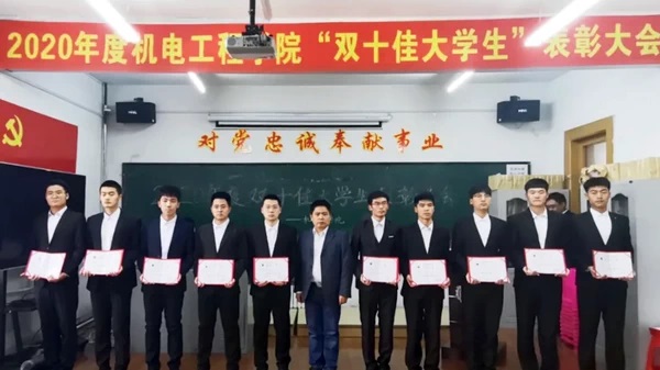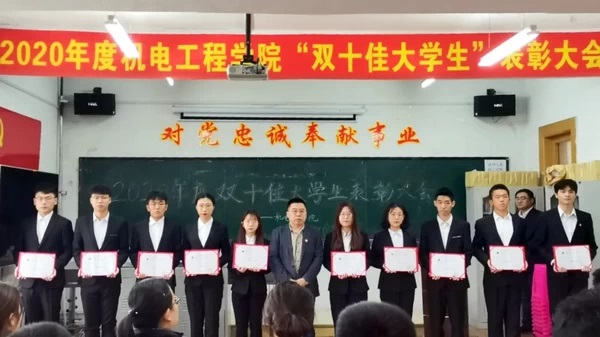 会上,首先由党委副书记黄向东宣读了yl7703永利关于表彰“十佳优秀大学生”和“十佳自强自立大学生”的决定。然后由学院领导为二十位获奖同学颁发证书和礼品。2019级学生王嘉懿作为受到表彰的“双十佳大学生”代表发言,在发言中他表达了对学院的感激之情,并表示要用自己的实际行动来展现新时代机电学子昂扬的精神风貌。